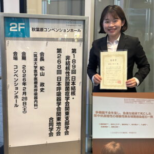 第268回 日本呼吸器学会関東地方会で優秀賞を受賞しました